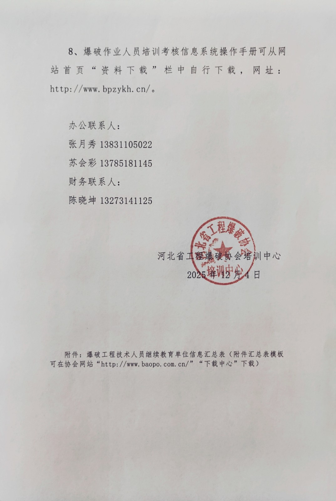 关于举办河北省2025年度爆破工程技术人员资质申请培训班的通知